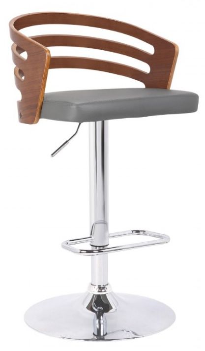The Armen Living Adele mid-century adjustable swivel barstool is a beautiful addition to the modern household. This stylish barstool features a swivel seat and adjustable base for maximum mobility and optimal comfort. The seat is upholstered with elegant faux leather and the back is made of a sturdy walnut wood. The Adele's metal column and base are chrome finished and exceptionally durable. The Adele is available in grey faux leather.