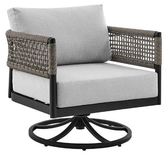 Lounge in style with the Alegria outdoor patio swivel rocking chair in black aluminum and grey rope with cushions. The Alegria brings the warmth of natural textures to a sleek modern design. This rocking swivel chair is a perfect fit for any outdoor lounging area, patio, or screened in porch.Read More