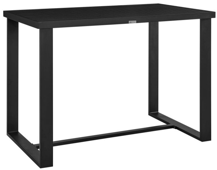 This patio table can be moved from your backyard to your screened-in porch, or to your garden with ease! The slat style tabletop helps elements to easily pass through which adds to its durability. Without having to worry about UV or weather damage, the Alegria pub table is ideal for your outdoor space, regardless of your location. The table's simplistic yet modern design makes this an easy piece of outdoor patio furniture to integrate into your existing design theme. The Alegria outdoor patio counter height dining table in aluminum features a black finish and will comfortably accommodate up to 6 seats, it's available in bar or counter height.