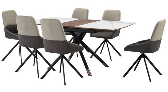 The Alora Maverick Extendable 7 Piece Dining Set with Swivel Chairs includes 6 Maverick swivel dining chairs and 1 Alora extendable dining table. They feature soft upholstery to serve as a chic and comfortable accent for any room.Read More