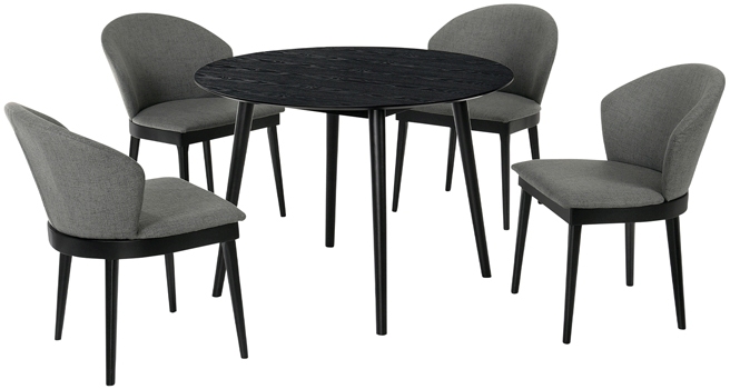 The Arcadia and Juno 42" Round Charcoal and Black Wood 5 Piece Dining Set is just what you need for your eat in kitchen or dining room. This 5-piece dining set will open your dining room with its clean, round table and modern chairs.Read More