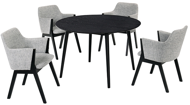 The Arcadia and Renzo 48" Round Grey and Black Wood 5 Piece Dining Set is the fashion forward addition that is perfect for any eat in kitchen or dining room. This 5-piece dining set will open your dining room with its clean, round table and modern chairs.Read More