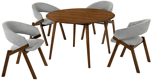 Meticulous craftsmanship and expert design have gone into the creation of this dining set, which is as functional as it is stylish. Hints of Scandinavian design and a mid-century modern feel come together to create the perfect space to share a meal with friends and family. The open-back design of the Talulah dining chair offers breathable seating, combined with the soft foam padded cushion - this chair will make you want to stay seated all day long. The rich fabric is alluring and authentic, looking great and performing well is what we want to offer to our customers every time. The Arcadia and Talulah Round 5 Piece Dining Set is available in your choice of a Black or Walnut Wood Finish with Grey upholstered Talulah chairs and are available as a 42” or 48” set.