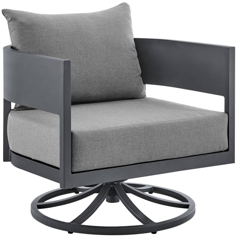 Lounge in style with the Argiope Outdoor Patio Swivel Rocking Chair in Grey Aluminum with Cushions. It’s 360-degree swivel and rocking motion allows optimal mobility and convenience. Featuring a modern and elegant design, this outdoor chair remains a versatile addition to any setting.Read More
