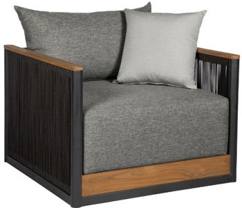 Creating a stunning piece of outdoor furniture that marries aesthetics with durability. The teak wood frame of the Artesia Outdoor Patio chair brings a touch of classic sophistication to your patio, infusing your outdoor space with a natural allure that stands the test of time. Teak's inherent weather-resistant properties ensure that this chair retains its beauty even in the face of changing weather conditions. Designed to endure the elements, this chair boasts water-resistant and UV-resistant features, promising resilience and style in every season. Whether bathed in sunlight or facing unexpected rain, the Artesia Chair stands as a steadfast centerpiece for your outdoor gatherings. The black rope accents add a contemporary flair to the design, creating a visually striking contrast with the warm tones of teak wood. Paired with sumptuous dark gray Olefin cushions, the Artesia Sofa invites you to relax in comfort and style. The water-resistant capabilities and easily removable cushion covers make maintenance effortless, allowing you to enjoy your outdoor oasis without compromise. As a bonus, the Artesia Outdoor Patio Chair comes complete with one throw pillow, adding an extra layer of luxury and personalization to your outdoor lounging experience. Elevate your patio with the Artesia Chair – a testament to enduring elegance and contemporary design that seamlessly fuses style with outdoor durability.