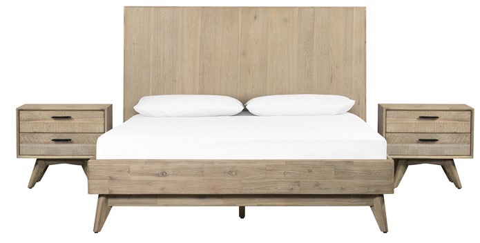 The bed features a low-profile design, while the nightstands feature spacious drawers for your storage needs