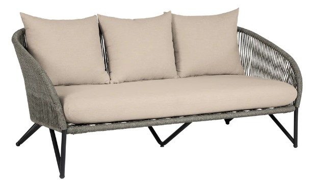 The incorporation of gray rope detailing adds a distinctive touch, contributing to the chair's unique visual appeal. Paired with taupe cushions, the Benicia Sofa invites you to relax in both comfort and style. The water-resistant cushions and easily removable covers simplify maintenance, allowing you to enjoy your outdoor oasis without compromise. Elevate your patio with the Benicia Sofa – a testament to enduring elegance and contemporary design that seamlessly blends style with the demands of modern outdoor living.