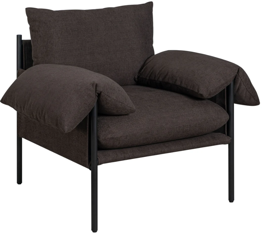 Introducing the Bloom Accent Chair, a beautiful balance of sculptural design and everyday comfort. Available in rich Brown or soft Oat, it is upholstered in a soft-touch performance fabric that offers a welcoming feel along with exceptional durability. The sleek black metal frame creates a striking contrast with the upholstery.Read More