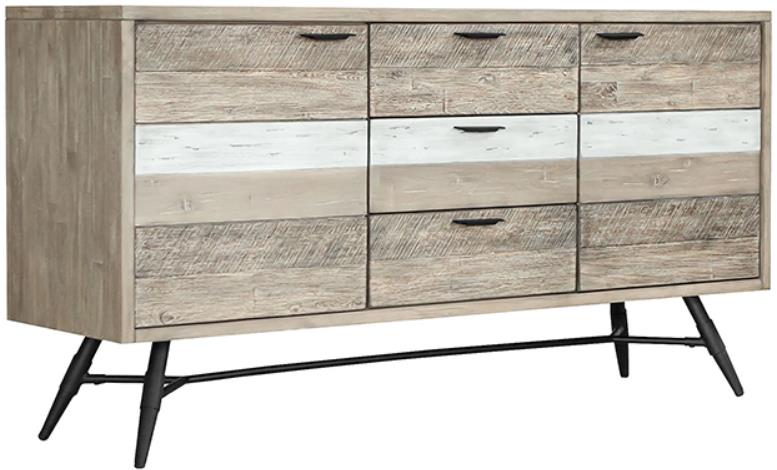 The Sideboard Buffet Cabinet made of Acacia wood is a popular choice for furniture because it has many advantages over other types of hardwood. The strength-to-weight ratio of acacia wood is one of the best in the world, making it perfect for furniture that needs to be lightweight but still durable. It is resistant to moisture and pests and does not warp. If you are looking for a durable, long-lasting material for your furniture, then acacia wood is worth considering. Our modern and clean-lined sideboard is elevated upon a sleek metallic base to serve as the perfect complement to your living room, dining room, bedroom, entryway, and home office. Featuring two cabinets and three roomy drawers, the sideboard can easily function as a buffet, bar, media unit, or office cabinet to bring ultimate style and convenience to your home. The Bridges collection features a unique multi-tonal finish that highlights the natural grain of the Acacia wood.