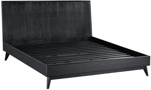 Bring modern elegance to your bedroom with a Carnaby bed frame in black brushed oak. Each piece is cut and layered to create an artisanal headboard that immediately strikes a visual impact. Featuring slim and minimal rails elevated upon tapered legs.Read More