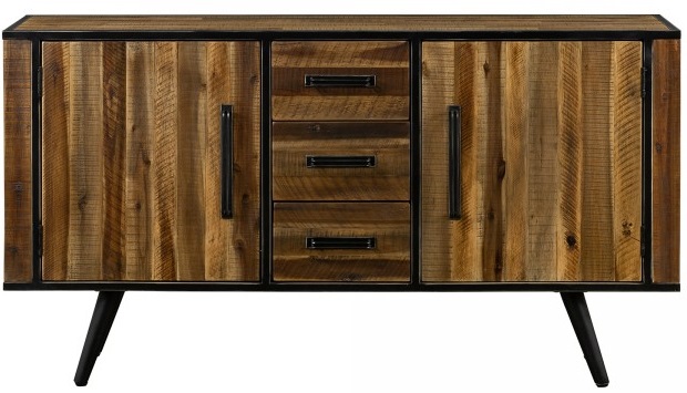The Armen Living Cusco Acacia Rustic Buffet Cabinet is a stunning piece to add to your dining room or living room. 57 inches in width, this cabinet offers tons of surface space for entertaining and serving. The cabinets and drawers offer a variety of storage options. The metal legs give this item a modern touch without compromising the warm rustic aesthetic. The Cusco collection expands to multiple rooms in your home. Coordinating bedroom, living room and dining room pieces not included. All available in an antique acacia finish with black metal accents.