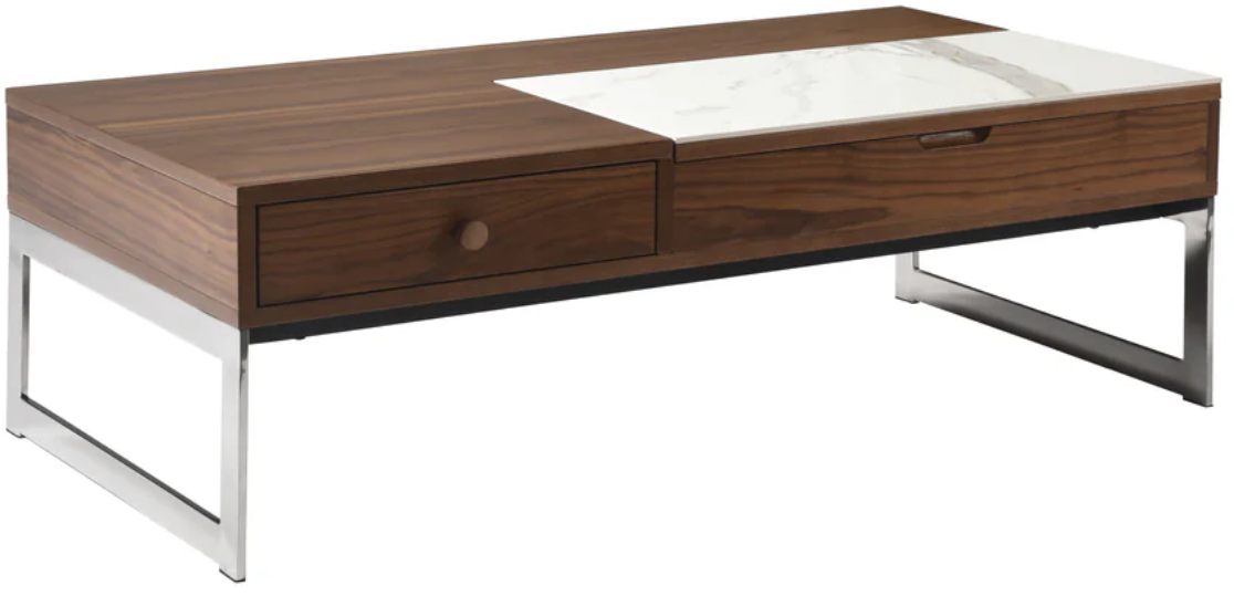 Elevate your living space with the Faye Lift-Top Coffee Table a beautiful fusion of form and function. Featuring a sleek walnut-finished wood frame, integrated storage, and a smooth sintered stone inlay, this rectangular table adds warmth and modern refinement to any room.Read More