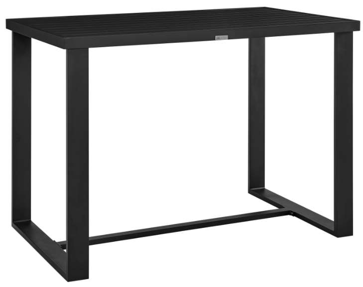 The table’s simplistic yet modern design makes this an easy piece of outdoor patio furniture to integrate into your existing design theme. The Felicia Outdoor Patio Bar Height Dining Table in Aluminum features a black finish and will comfortably accommodate up to 6 seats. The chic aluminum frame features a multi-layer powder coating for effective protection from the weather, everyday wear, and tear which adds to the longevity of this piece of outdoor furniture. This patio table can be moved from your backyard to your screened-in porch, or to your garden with ease! The slat style tabletop helps elements to easily pass through which adds to its durability.
