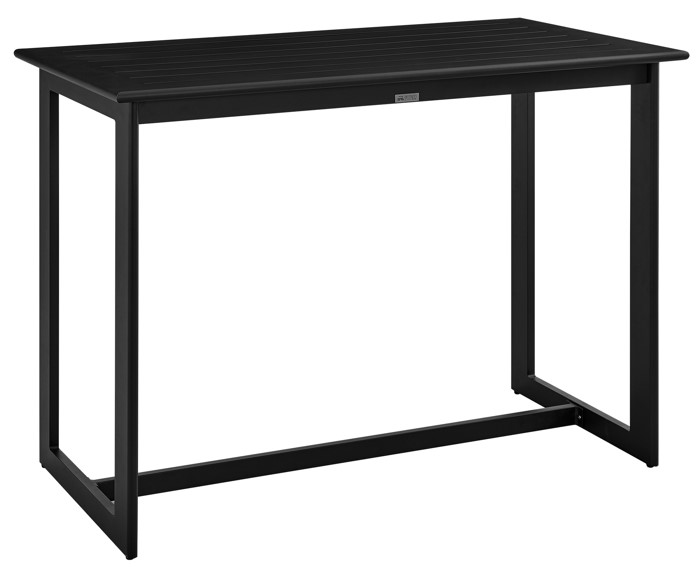 Without having to worry about UV, rust, or weather damage, the Grand patio table is ideal for your home, regardless of your location. The slat-style tabletop helps elements to easily pass through which adds to its durability making this the ideal piece of outdoor patio furniture. It can serve as a great spot to enjoy meals and cocktails hours outside with friends and family. The Grand bar-height dining table is a staple piece to add to your outdoor furniture collection and is available in aluminum, features a black finish, and will comfortably accommodate up to 6 seats.