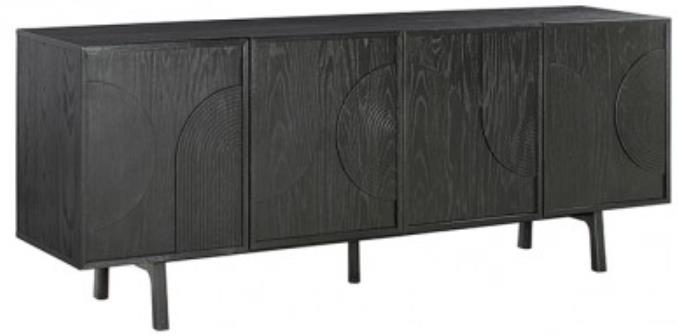Give a stylish upgrade to your home with Holland 4-door sideboard buffet in black brushed oak. The stunning sideboard buffet cabinet uses geometric shapes to attain a rhythmic and visually captivating design. It juxtaposes textural lines across the plain surface to give an artisanal feel.Read More