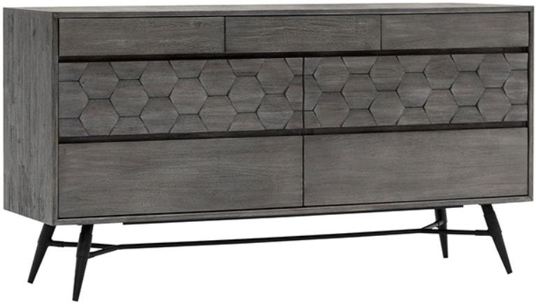 Add stylish storage to your bedroom with a Makena six-drawer dresser in grey Acacia wood. The sleek facade of our dresser is enlivened with a three-dimensional honeycomb pattern. Bringing playful elegance to your bedroom, the dresser showcases the natural grains of Acacia in a charming grey finish.Read More