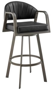 Give a sleek and stylish update to your home with the Marcie swivel counter or bar height stool in faux leather and metal by Armen living. Combining modern and industrial notes, our barstool is ready to impress with its timeless charm and comfort. The sturdy, iron arms and built-in circular footrest demonstrate how this barstool was designed with your comfort in mind.Read More