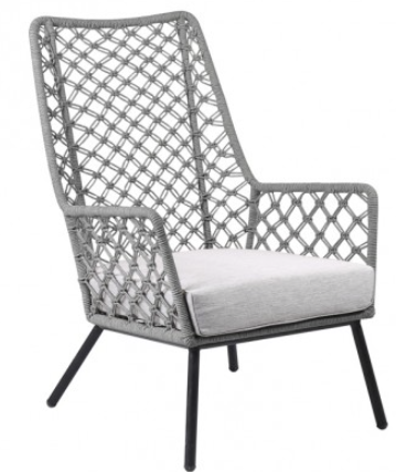The incredibly comfortable seat cushion is meant to keep relaxed and alleviate any discomfort. The tall, breathable back was also designed with your comfort in mind and allows the elements to pass through while still providing a remarkable level of comfort. This chair is designed with a unique feature where the frame is wrapped with highly durable and immensely intricate woven rope - adding a completely new dimension to your outdoor furniture which will last just as long and will be even more eye-catching than conventional outdoor frame material. Furniture made from the woven rope can be an especially good choice for people looking for items they can leave outside all year long. That is because the woven rope is highly resistant to all types of weather including heavy winds and rain. The Marco outdoor chair is available in your color choice of grey, natural, or truffle rope.