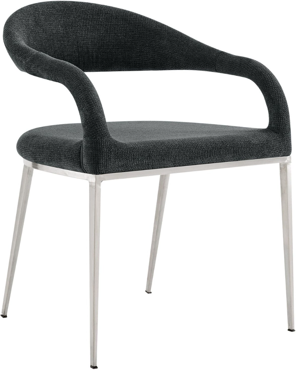 Transform any space with the luxurious charm and comfort of the Morgan Dining Chair in Fabric and Metal - Set of 2 by Armen Living. The cozy yet streamlined profile of our chair offers comfort with a touch of opulence. Its beautifully curved back and seamlessly flowing arms.Read More