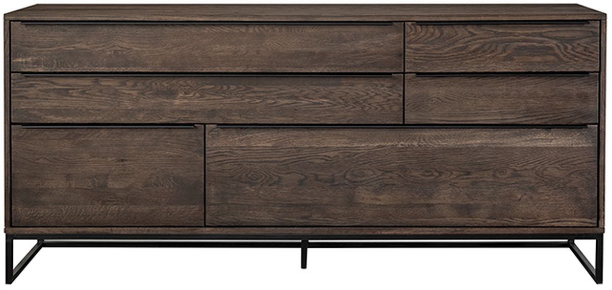 Immerse your home into mid-century aesthetics with the Armen Living Nevada Sideboard Display Stand. This sideboard features a durable mixed wood frame with smooth oak wood grain finish, straight horizontal wood leg base, a spacious shelf on both sides, and 2 drawers on each side with soft close function. Nevada features an abundance of storage for your silverware, dishes, and other dining room finery. Boasting a mid-century modern style this sideboard features a solid construction with a pleasing look and practical functionality. Perfect as a sideboard, credenza, buffet cabinet or display stand and can also accommodates flat-screen TVs up to 60” wide as a living room or lounge area TV stand. This item is a part of the Armen Living Nevada collection but can be mixed and match in any rustic or modern style home.