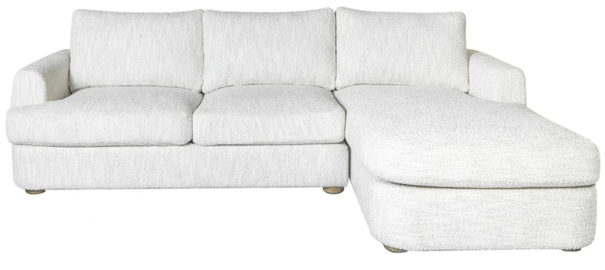 The generously sized rectangular seat comfortably accommodates up to three people, perfect for lounging, reading, or movie nights with friends and family. Designed with a plush pillow-back for exceptional support, the Reid invites you to relax in total comfort. Rounded, foam-padded arms create a cozy yet refined silhouette, adding softness and sophistication to any space. Built for lasting use, the frame is constructed from a durable mix of engineered wood and solid rubberwood, supporting up to 1,200 pounds with ease. The sectional rests on a classic four-leg base in a warm brown finish that complements the upholstery beautifully. Available in both Left Arm Facing and Right Arm Facing configurations, the Reid Sectional adapts effortlessly to your layout, offering flexible styling options for the modern.