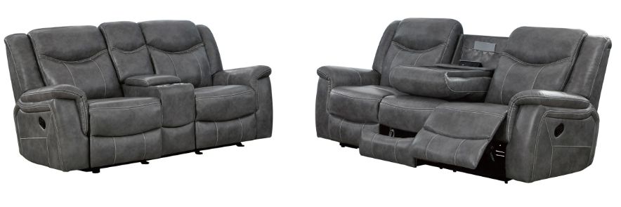 Experience the perfect blend of comfort and functionality with this reclining sofa set, upholstered in smooth grey faux leather for a contemporary appeal. Designed for relaxation, each piece features plush cushioning, padded headrests, and supportive armrests.Read More