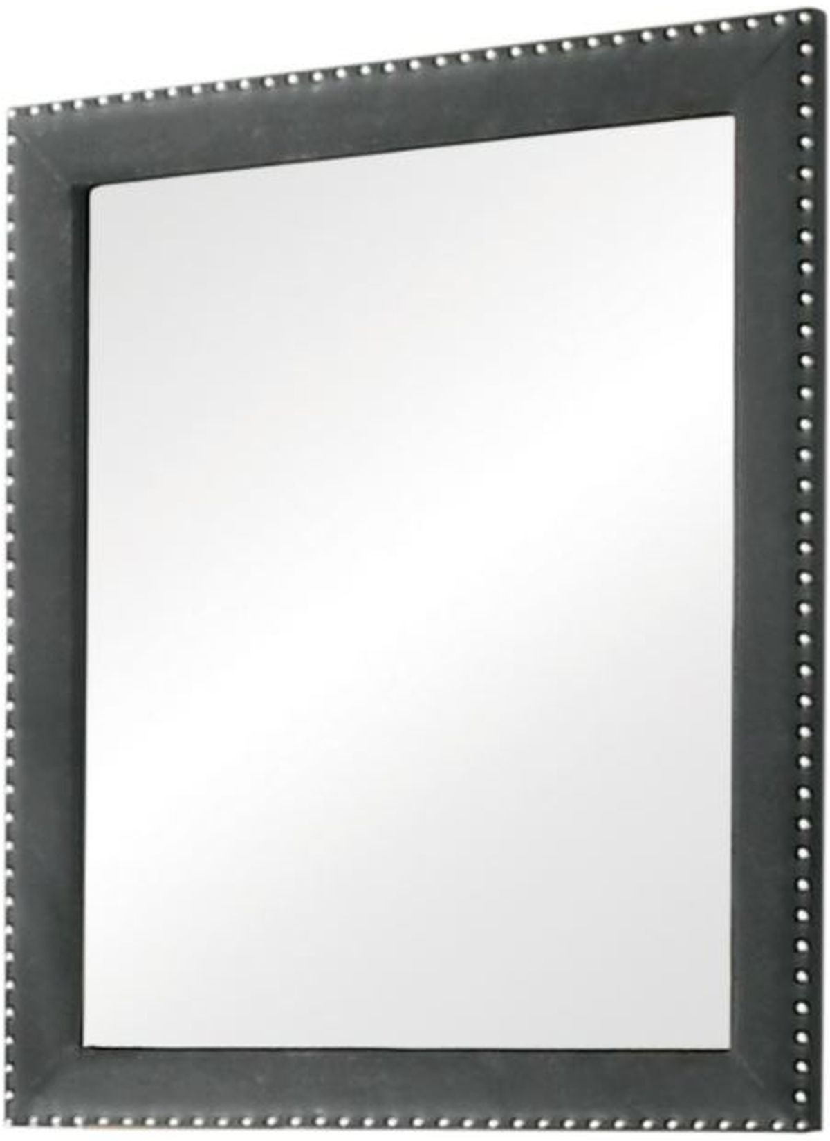 This gorgeous mirror is a masterpiece made for royalty, ready to perk up your sleeping space. Its admirable frame is upholstered entirely in gorgeous velvet fabric. Nail head trim surrounds the frame for a sleek and exquisite upgrade. Place this mirror on top of a matching dresser and watch how your sleeping space becomes transformed. Designed for glam-style bedrooms.