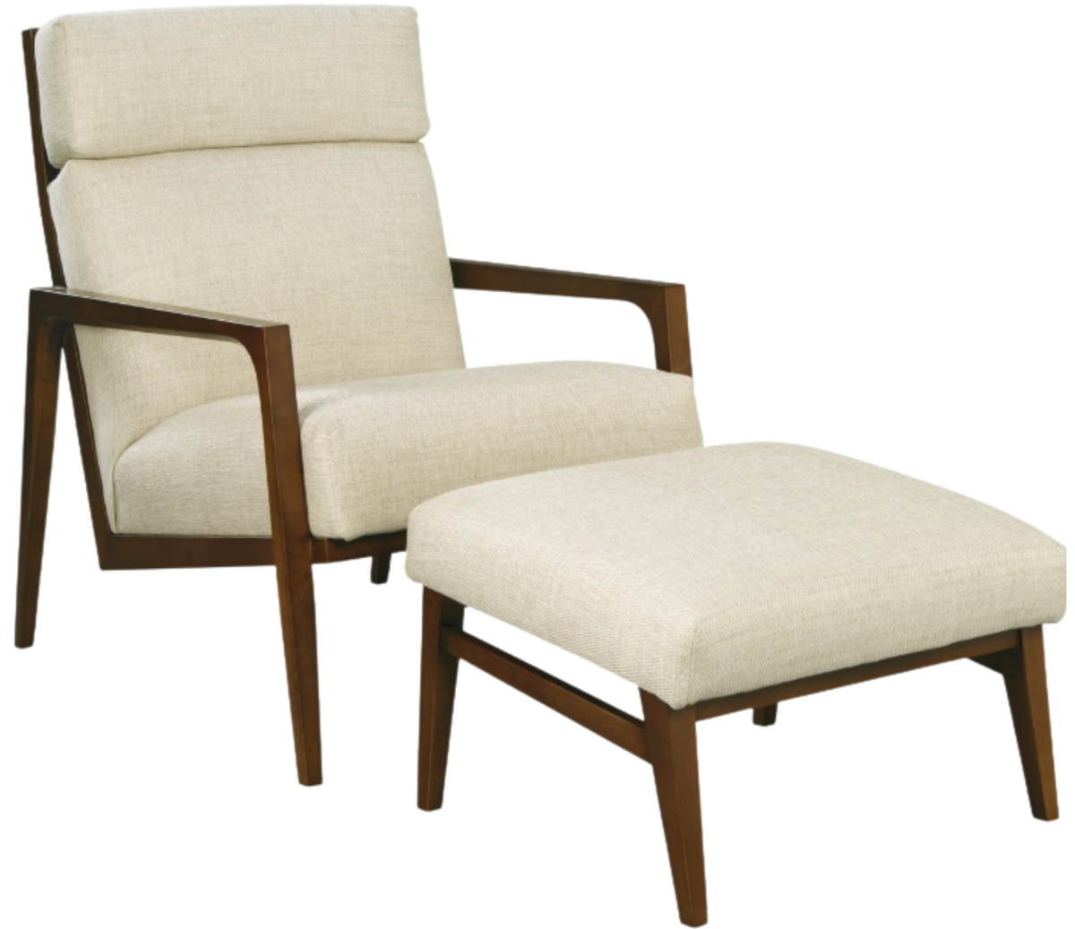 This stylish wood accent chair has a mid-century modern rustic sophistication for a clean, minimalist effect. Designed for relaxation, the seat positions you to the back, while the matching ottoman is sloped forward to relieve stress points.Read More