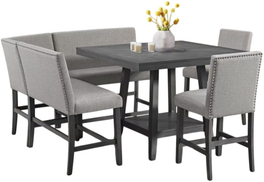Upgrade your dining space with the Seneca 8-piece gray counter height dining set. Featuring a sleek gray table and seven matching upholstered counter chairs, it offers modern style and comfortable seating—perfect for family gatherings, entertaining, or casual meals.Read More