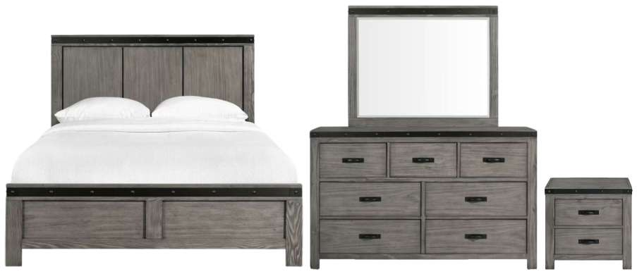 Elements International Wide 4-Piece Gray Queen Panel Bedroom Set