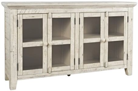 Jofran Inc. Rustic Shores Scrimshaw Cream 4-Door Low Accent Cabinet