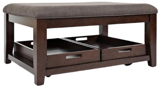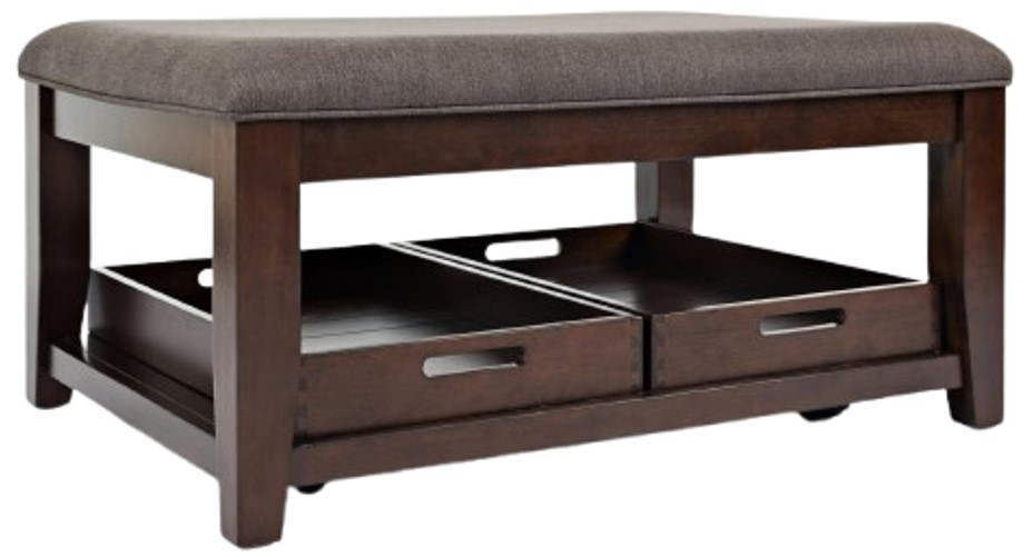 Jofran's Twin Cities Occasional collection offers your living room a classic look with its dark finish and solid silhouettes, but it's the ottoman cocktail table that is the real star of this group. Upholstered with our easy living charcoal fabric, it is stain resistant and moisture repellent- making it perfect for everyday life.Read More