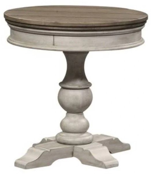 Liberty Furniture Heartland Antique White/Tobacco Pedestal Chairside Table