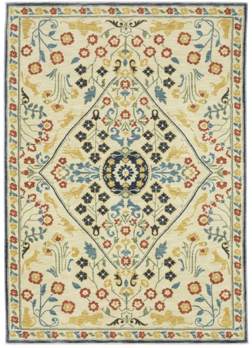 The Francesca collection features softened jewel tones of sapphire and turquoise, muted gold, and cinnabar alongside nature-inspired neutrals and an earthy brown and green. It is power-loomed of space dyed, super soft polypropylene. Francesca showcases updated traditional patterns highlighting open fields, updated borders, and some folk-art flair.Read More