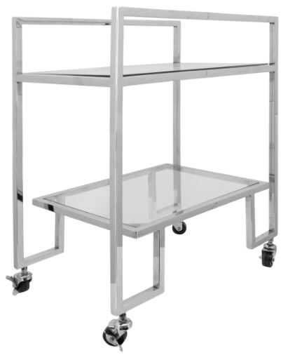 This 2-layered bar cart shown in Silver color finish features a 32" high by 26.75" in diameter. Make a bold statement by incorporating this stunning Bar Cart into your home.Read More