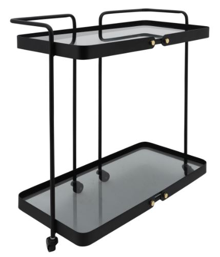 This 2-layered bar cart shown in Black color finish features a 27" high by 27" in diameter. Make a bold statement by incorporating this stunning Bar Cart into your home.Read More
