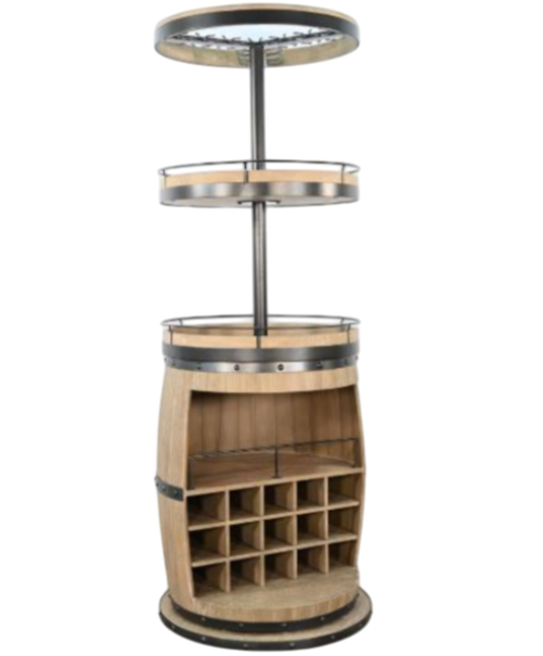 The Wheat Barrel Bar with Swivel is crafted from mahogany solids and veneers, this barrel-style bar features a 360-degree swivel base, wine bottle storage, and a built-in glass rack. Finished in a warm wheat tone, it’s a perfect blend of rustic charm and functionality.Read More