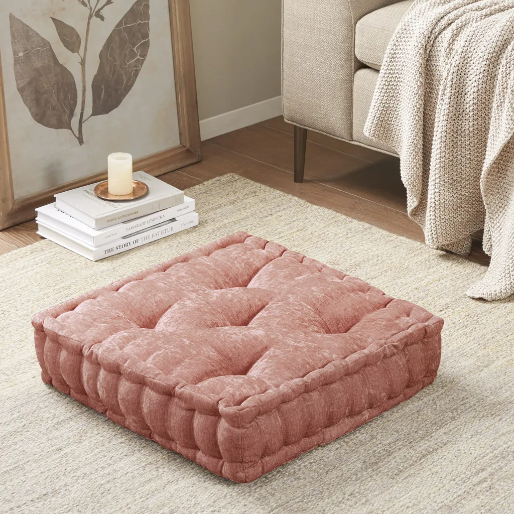 Create a cozy retreat anywhere in your home with our Intelligent Design Azza Chenille Square Floor Pillow Cushion. This floor pillow is featured in soft and trendy colors for the perfect feminine flair, while the rich textured poly chenille creates a light natural luster sure to catch your eye. Tufted detailing and a scalloped edge creates a charming and unique touch, while 100% polyester filling provides simple comfort. Versatile and easy to layer, makes this floor pillow an easy addition to any space. In addition, this floor cushion is also OEKO-TEX certified, meaning it does not contain any harmful substances or chemicals to ensure quality comfort and wellness.