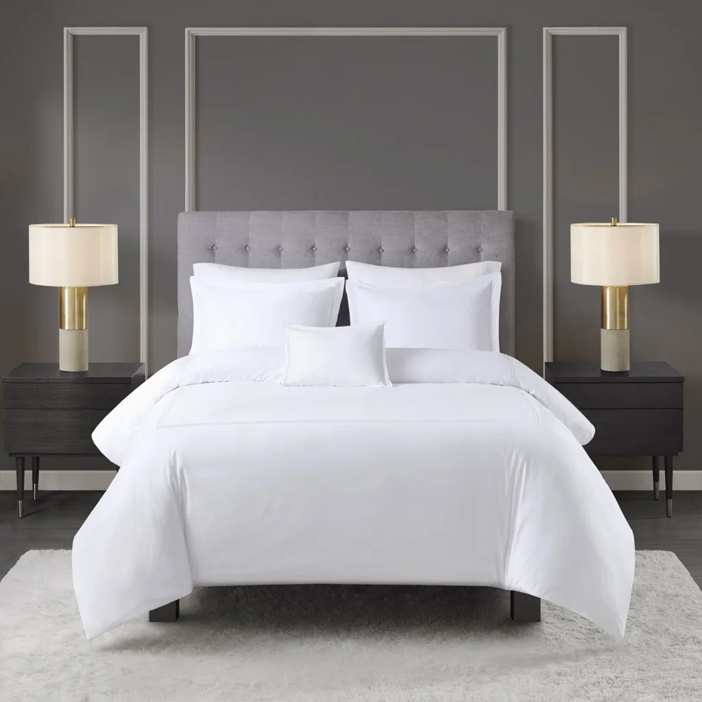 Make every night feel like a luxurious hotel escape with this 500 Thread Count duvet cover set. Made of soft cotton, this refined 4 piece set features a double-row striped embroidered border for an elegant finish. The duvet cover is removable and has corner ties with a zipper closure for easy care. This set is also OEKO-TEX certified, meaning it does not contain any harmful substances or chemicals to ensure quality comfort and wellness.